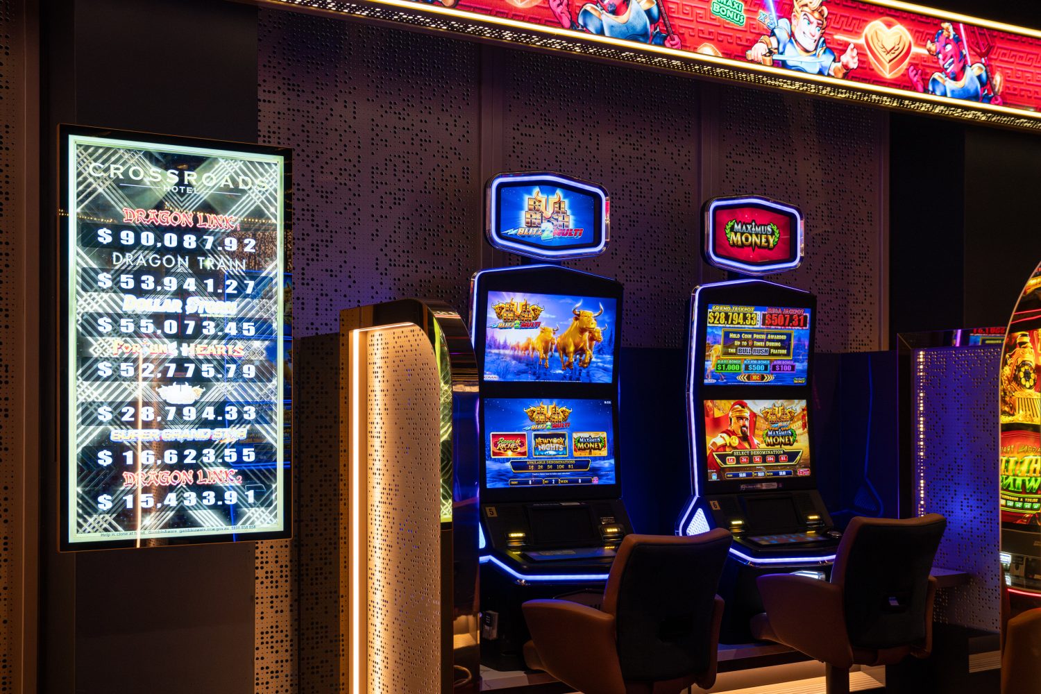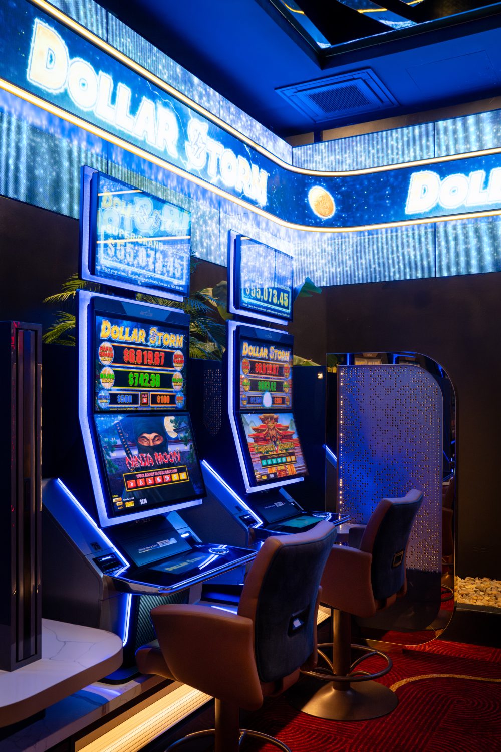 Jackpot Scoreboards, both LED and LCD are also distributed throughout the space to inform patrons of the latest wins and current values.