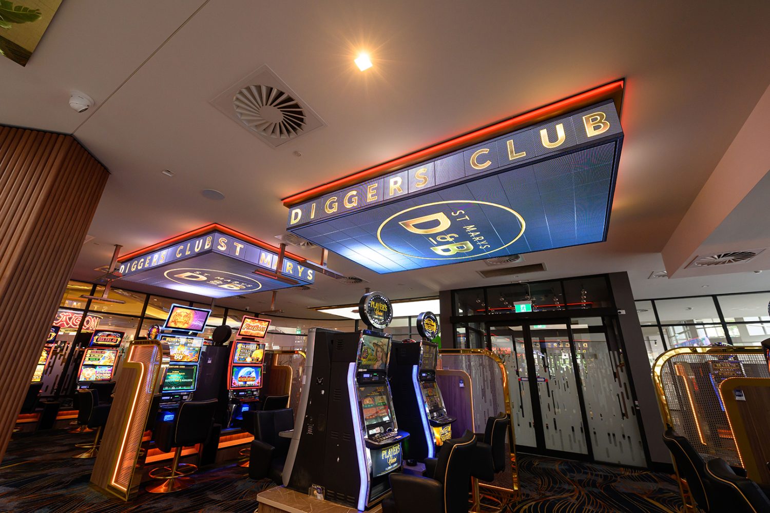 St Mary’s Diggers Club commisioned Precision Signs to develop a custom display brief to suit the venue’s gaming floor plan designed by Tony Donnelly