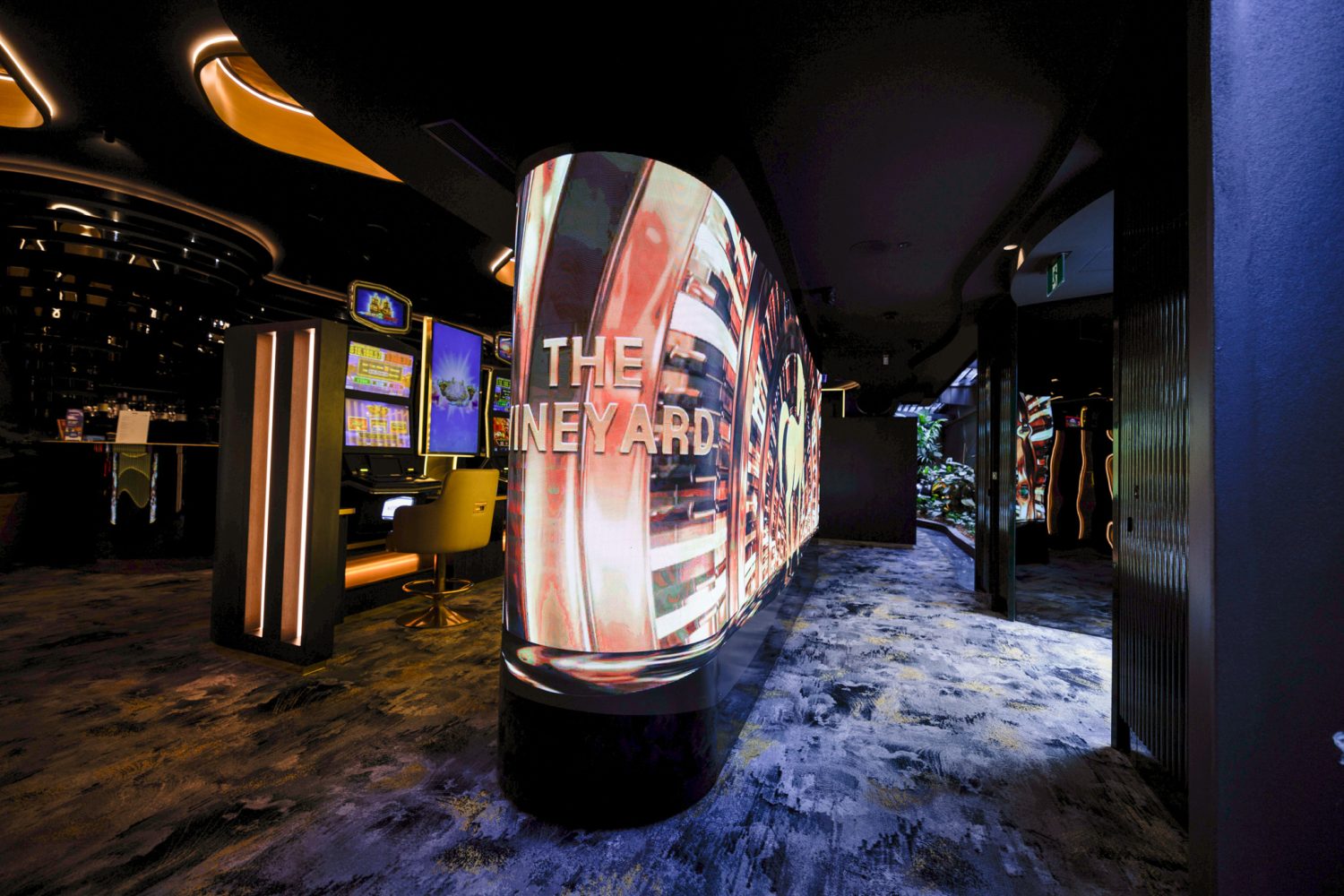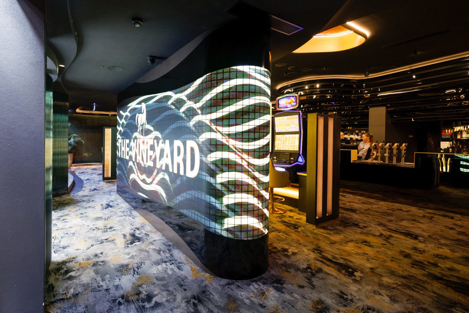 Zenith Hotels commissioned Fabric Architecture Studio to conceptualize a sophisticated gaming room for The Vineyard Sydney. Precision Signs was brought on board early in the design phase to collaborate on the digital signage and feature screens that would elevate the space. Working closely with Fabric Architecture Studio and Design Group—renowned for their gaming machine bases and furniture—we developed a comprehensive plan that seamlessly integrated gaming furniture, digital displays, and privacy screens into a cohesive design.